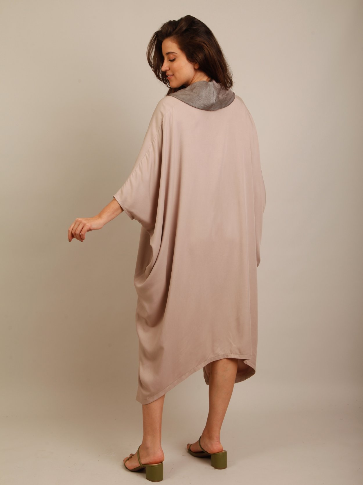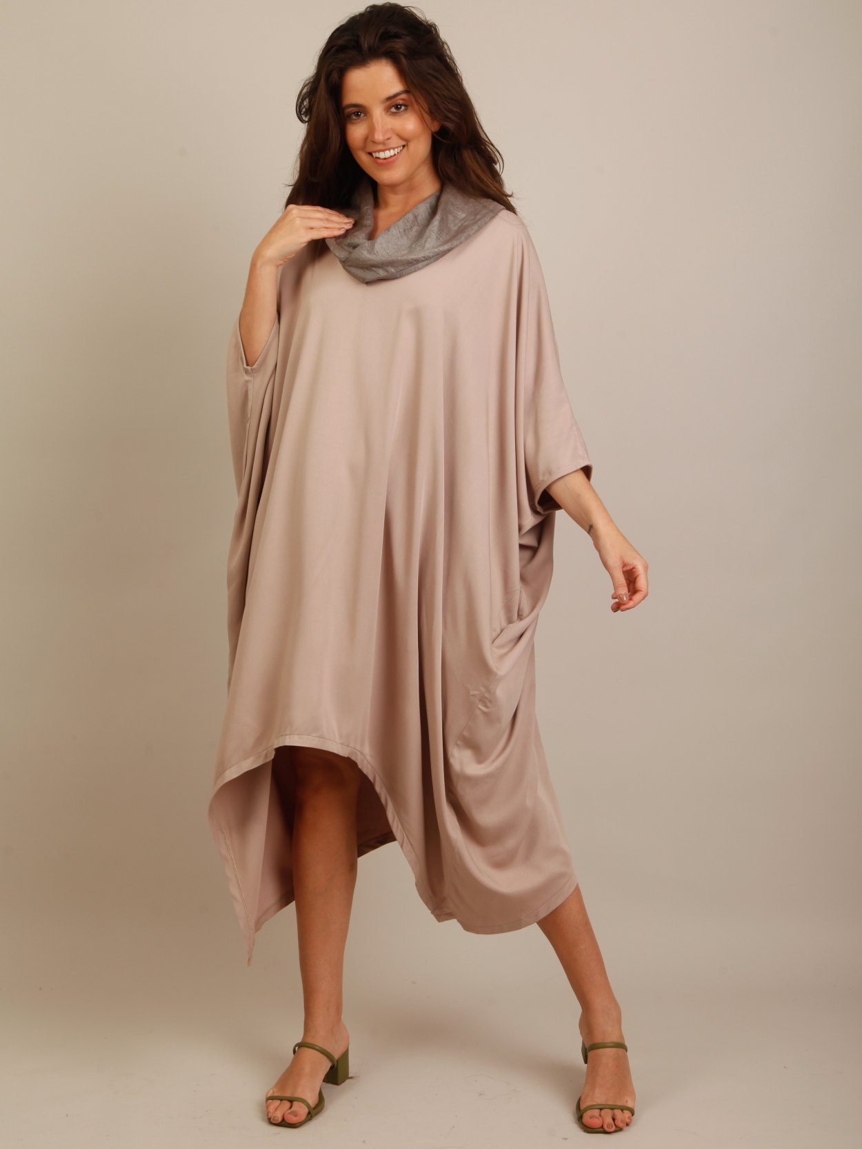 Vestido amplo Gola alta em cor cinza Mangas japonesa